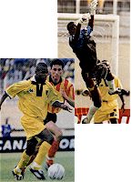 Zezeto und Torwart Copa in Action. Die Fotos stammen aus den beiden Fachmagazinen